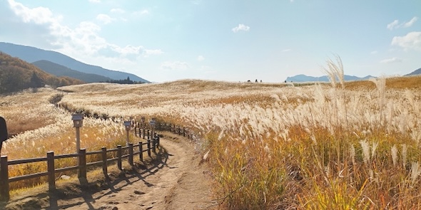 朝モヤの曽爾高原に立つと、風がススキを金色に染め、波のように揺れるその光景の中で、賑やかな都市の記憶が音もなく遠のいていくのを感じます。